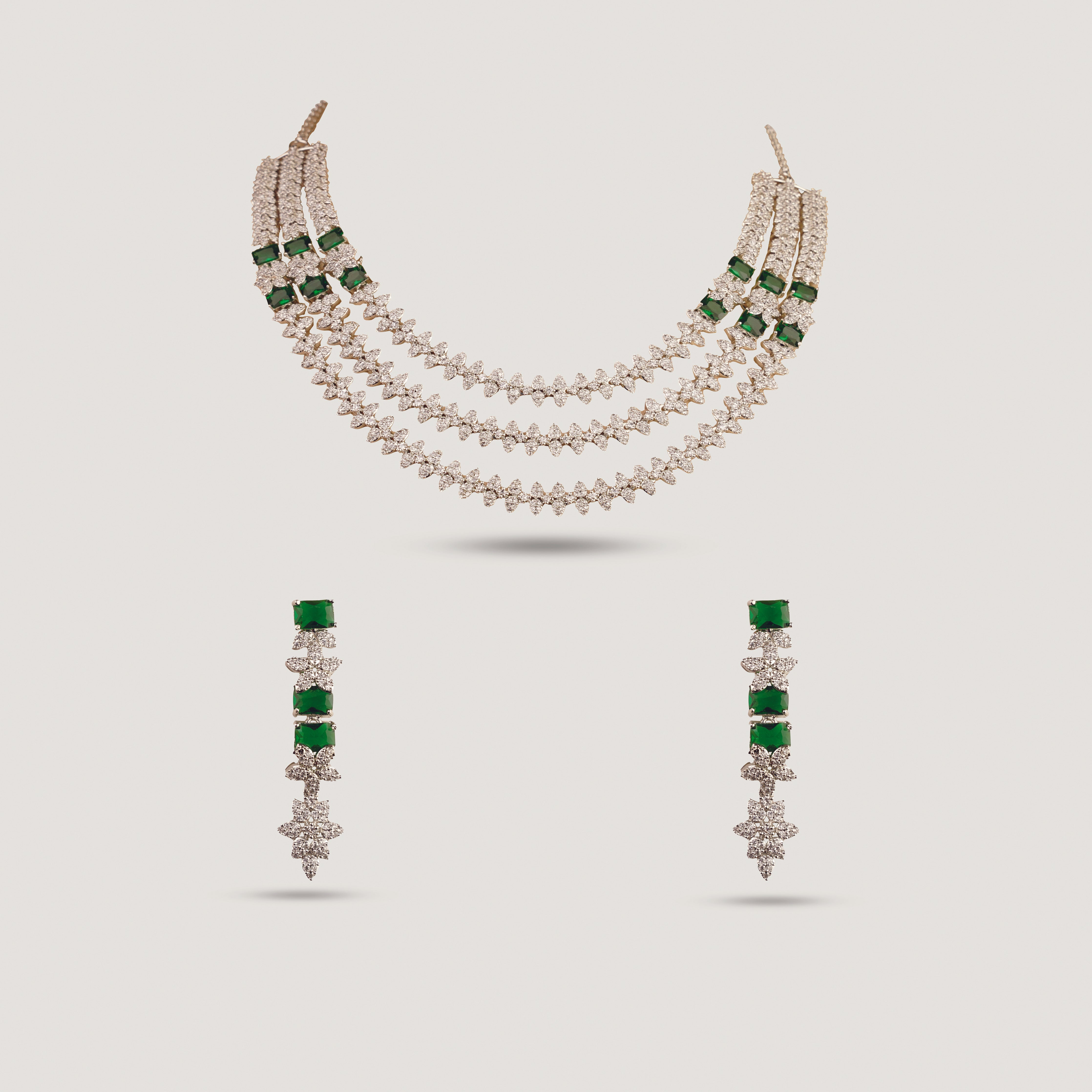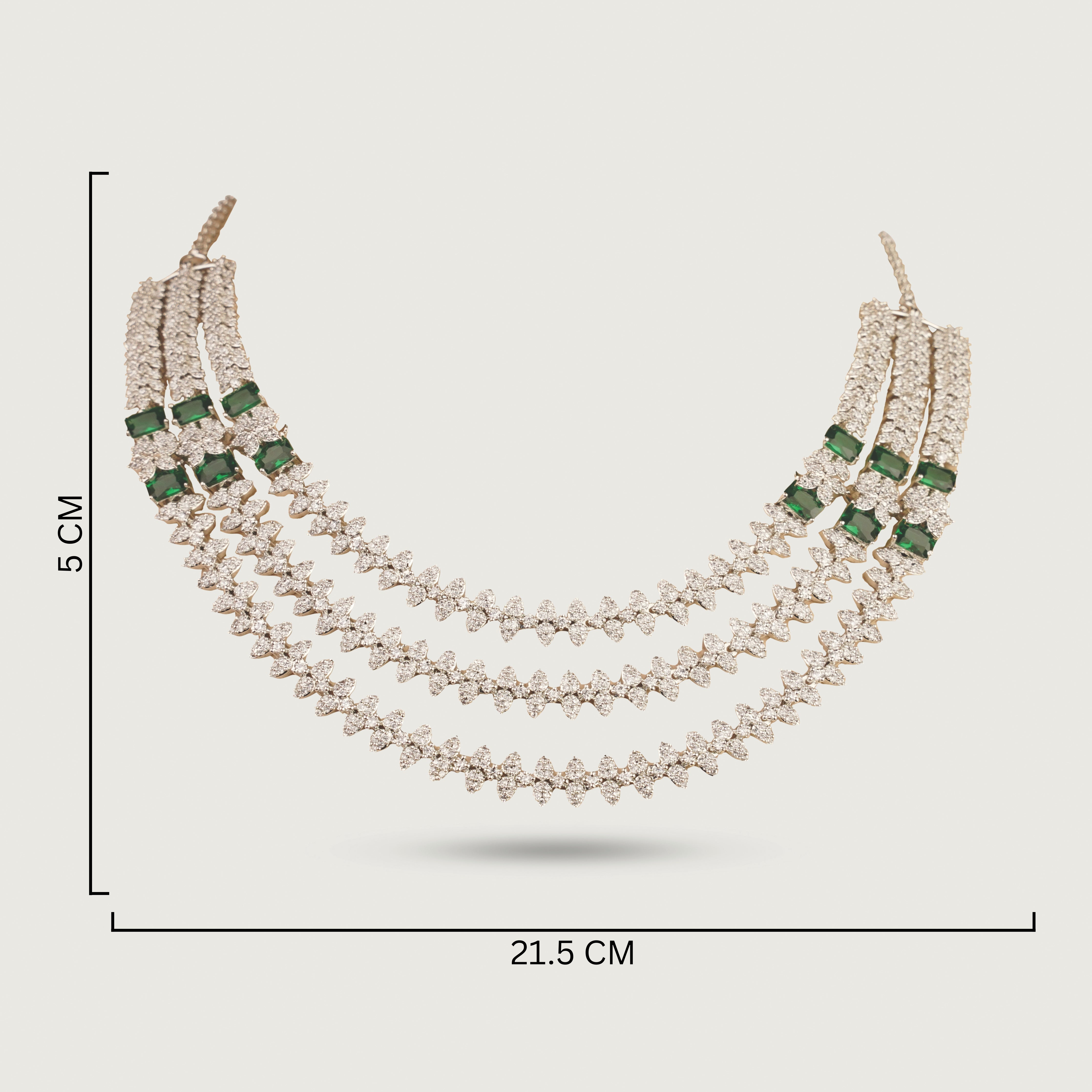 The layered arrangement creates visual interest without overwhelming the look, making Sophia a versatile choice for weddings, festive gatherings, and formal occasions. Paired with minimal drop earrings, the set maintains a balanced, polished finish that’s easy to style from day to evening.