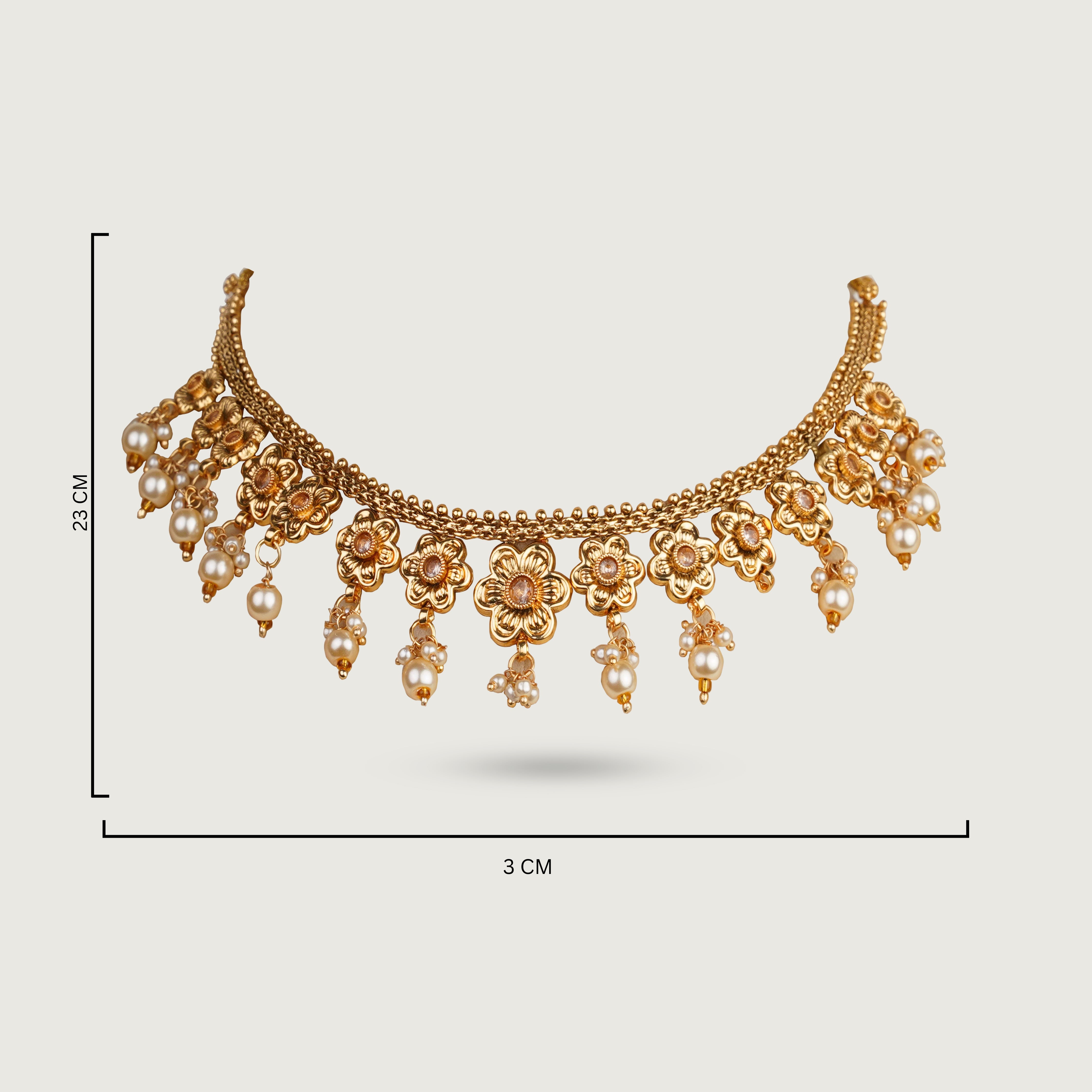 The necklace sits confidently along the neckline, creating a polished glow that elevates the entire ensemble. Coordinated earrings add balance and movement, while the maang tikka completes the look with symmetry and elegance. Designed for weddings, festive celebrations, and statement occasions, Tavleen is made to draw attention while keeping the finish timeless and composed.