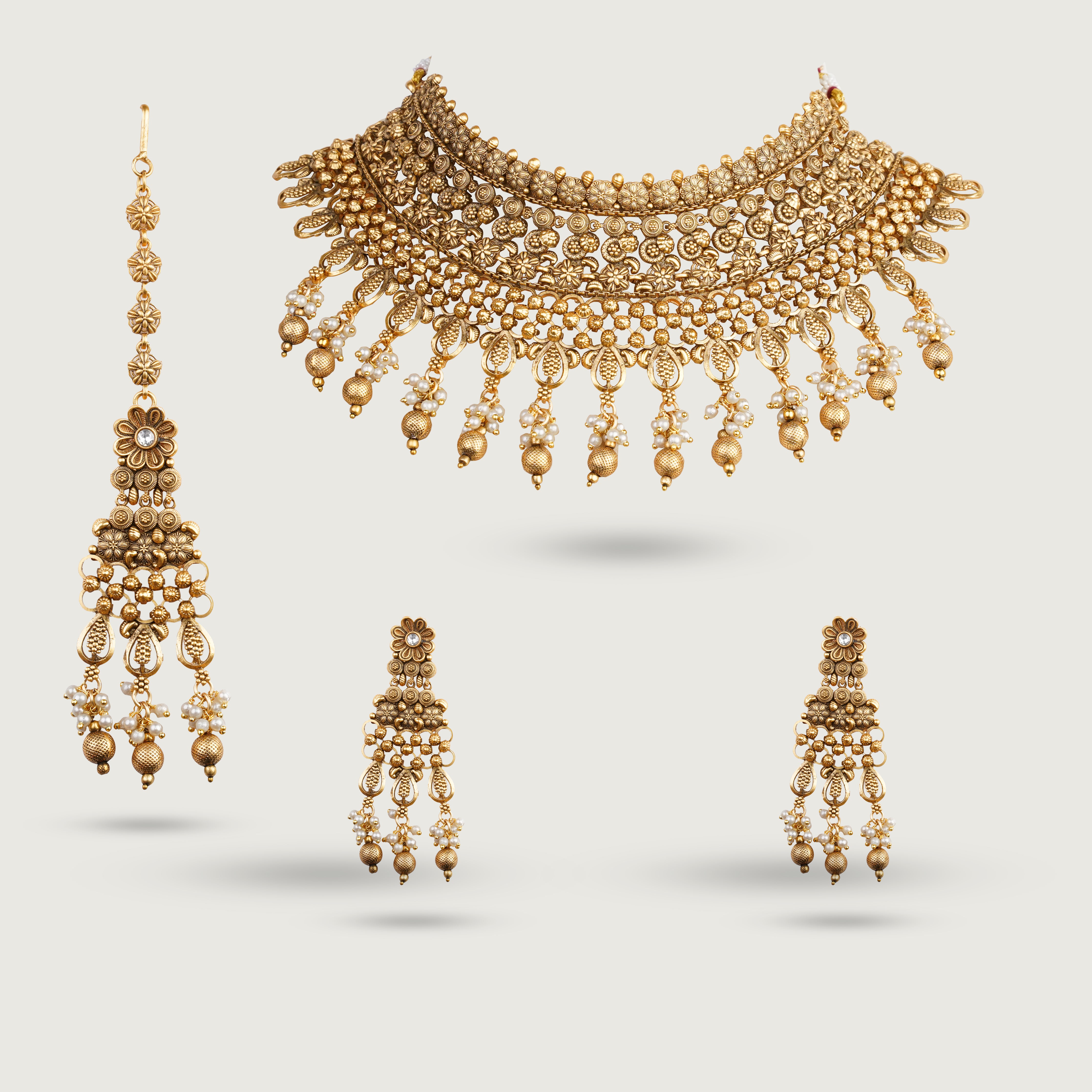 The Pavan Set stands out with its bold gold tone and striking design. Rich detailing adds depth and glow, creating a look that feels powerful yet refined.
