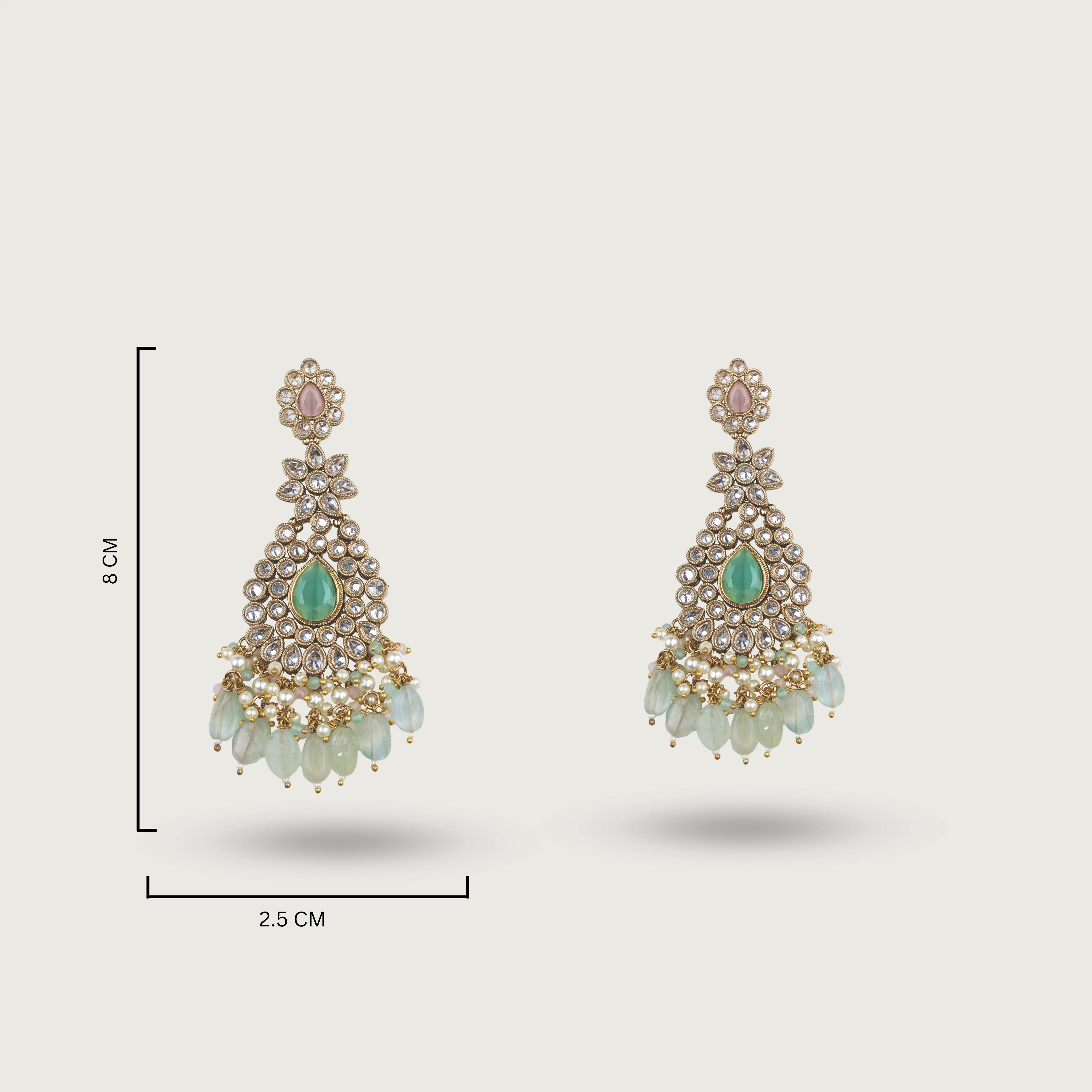 The necklace sits beautifully along the neckline, offering depth, craftsmanship, and a luminous finish. Coordinated earrings add elongated elegance and fluid movement, while the maang tikka completes the ensemble with harmony and polish. Designed to leave a lasting impression, Hadiya is ideal for weddings, formal celebrations, and timeless occasions.