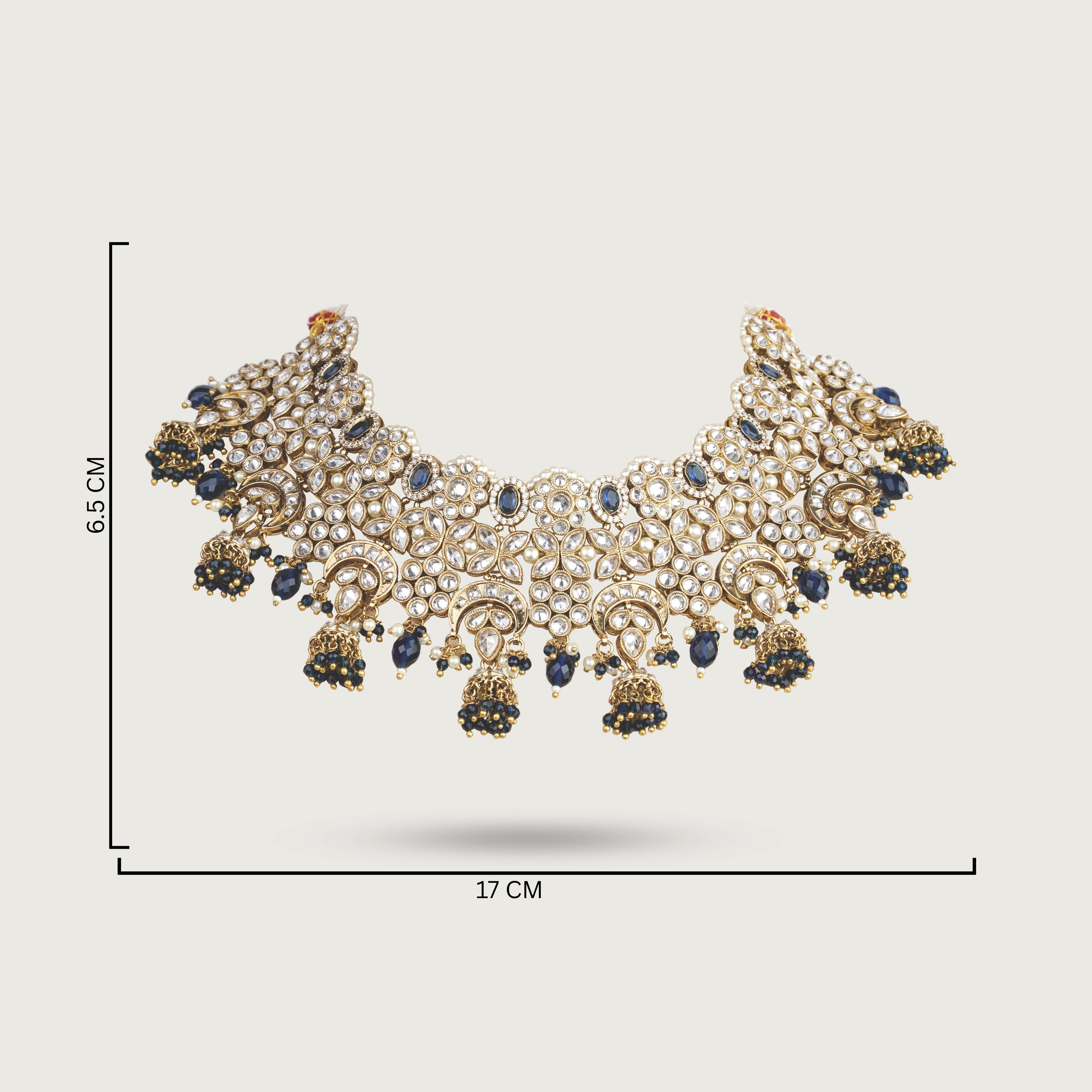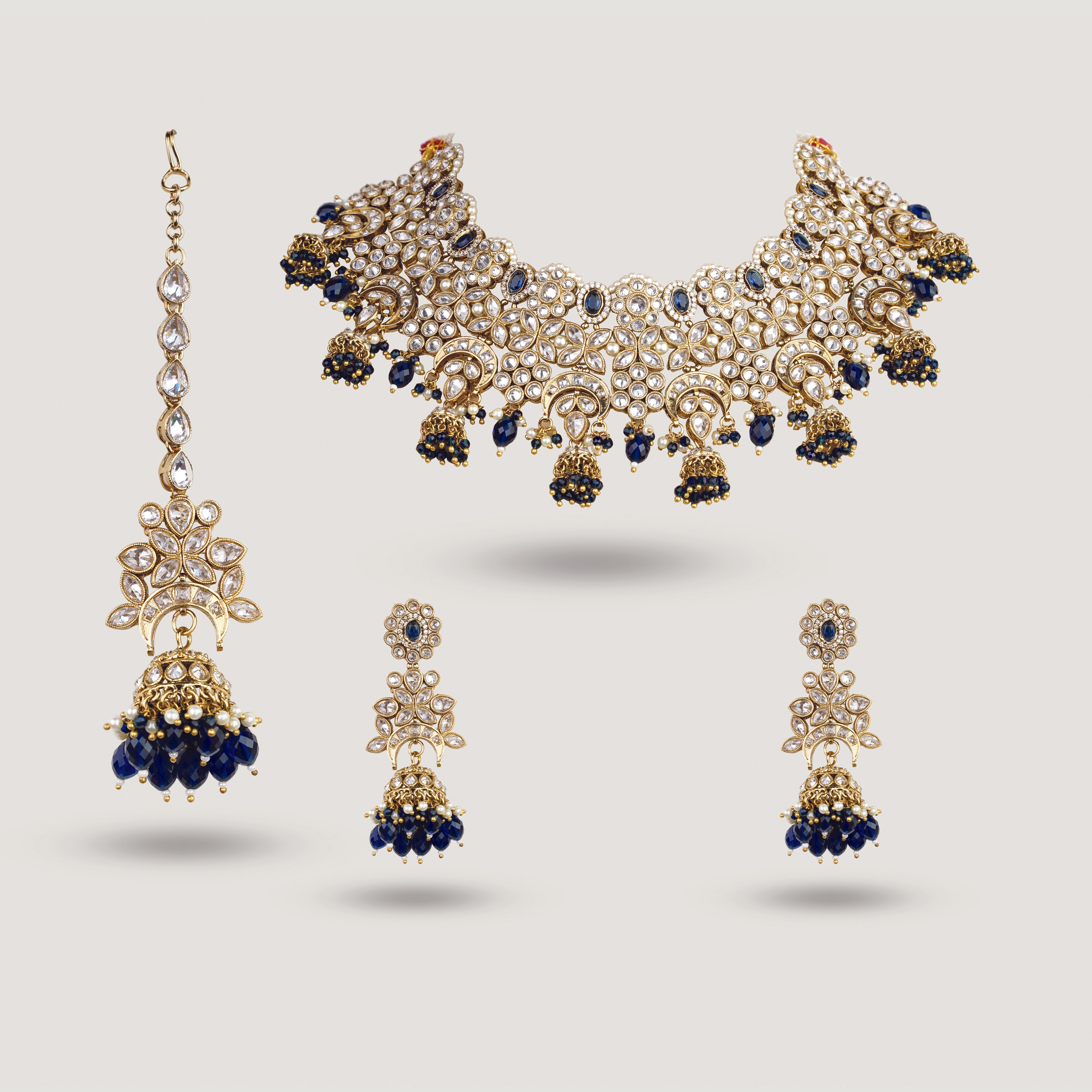 The necklace sits beautifully along the neckline, offering a polished statement that feels both radiant and composed. Coordinated earrings add fluid movement and sparkle, while the maang tikka completes the look with symmetry and balance. Perfect for weddings, receptions, and elevated celebrations, Anika is a set that feels truly special — luxurious, elegant, and unforgettable.