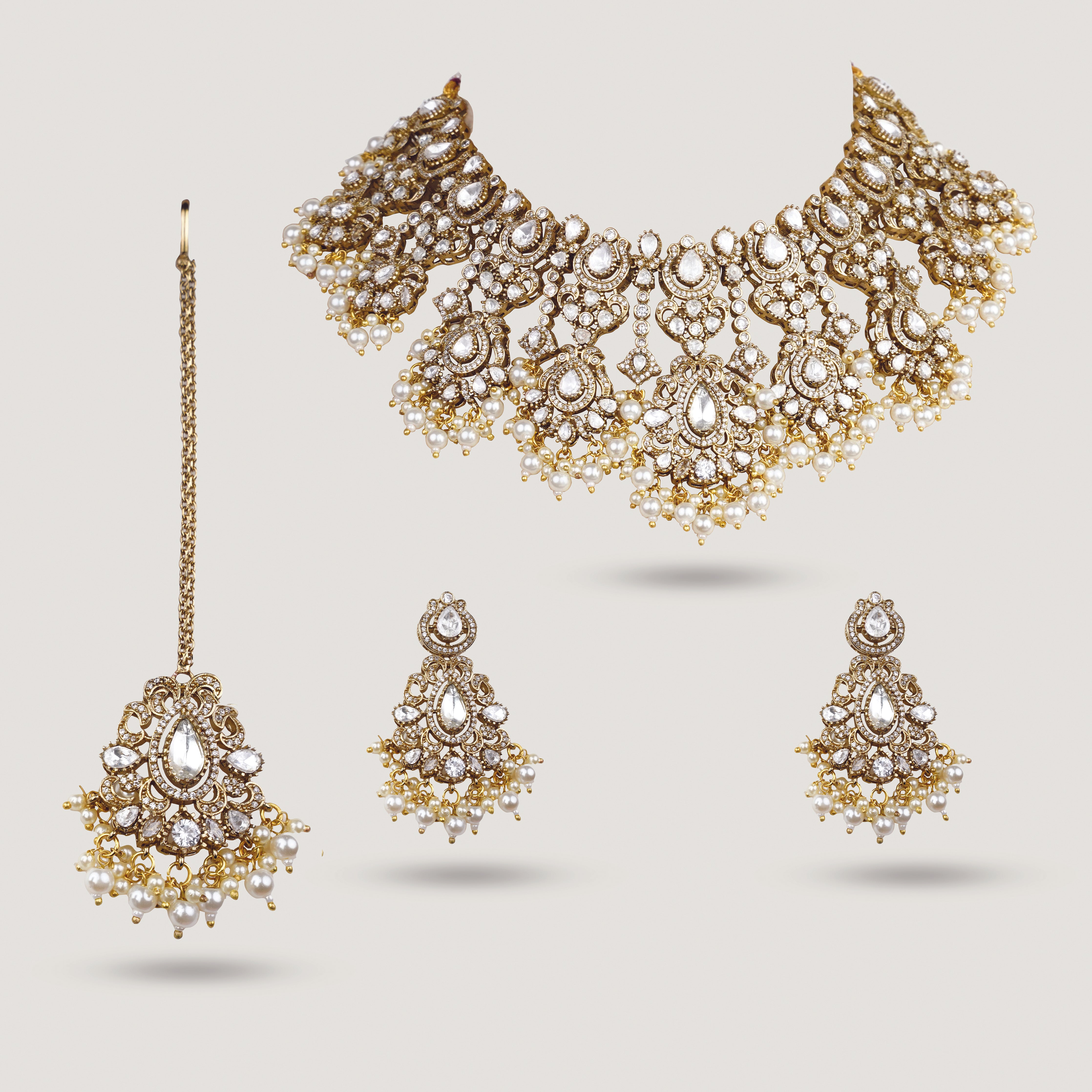 Designed to sit elegantly along the neckline with rich Kundan detailing.