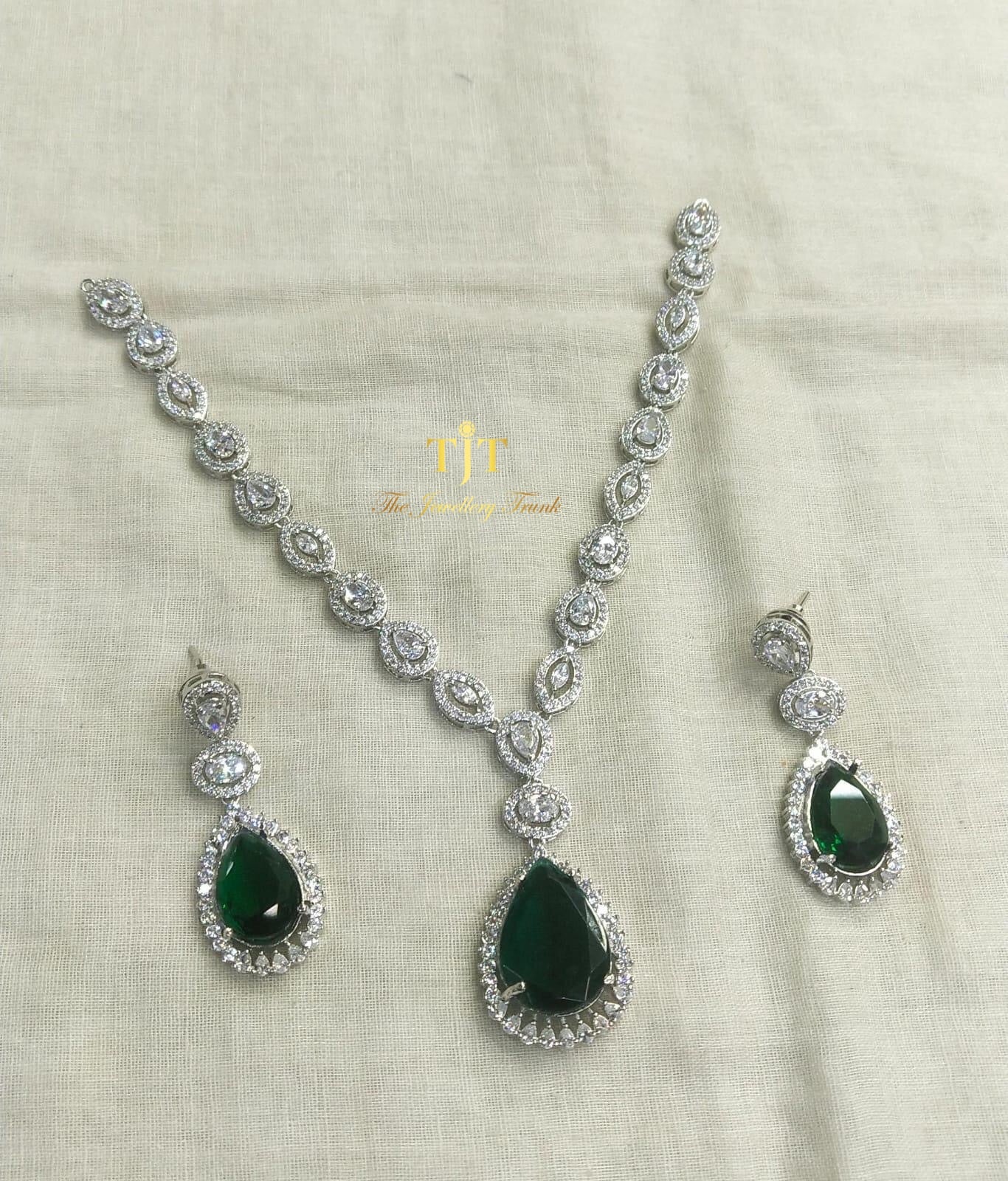 An American diamond necklace set. This is perfect for brides and bridesmaids who are opting for a western touch to their outfits and want a diamond effect.