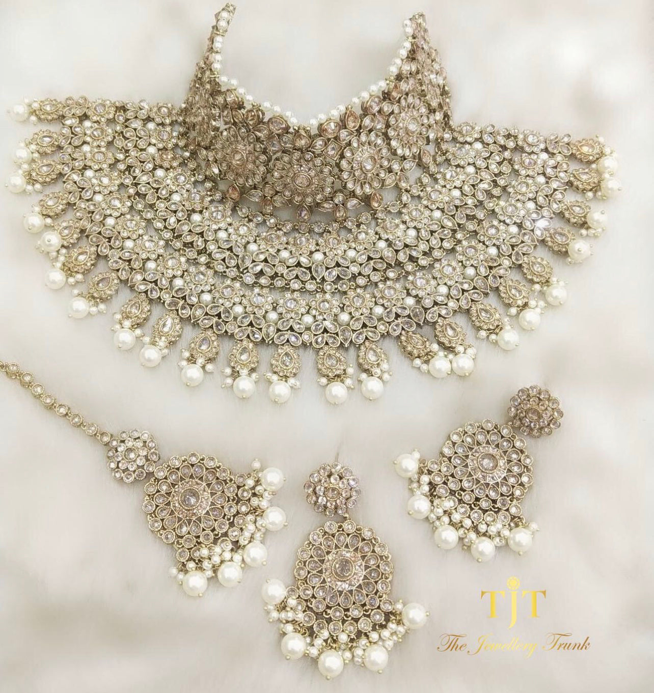 A statement choker necklace piece which is for the brides who are looking to go for a full heavy bridal look to compliment their outfit.