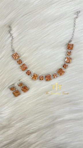 An American diamond necklace set with a pendant. This is perfect for brides and bridesmaids who are opting for a western touch to their outfits and want a diamond effect.