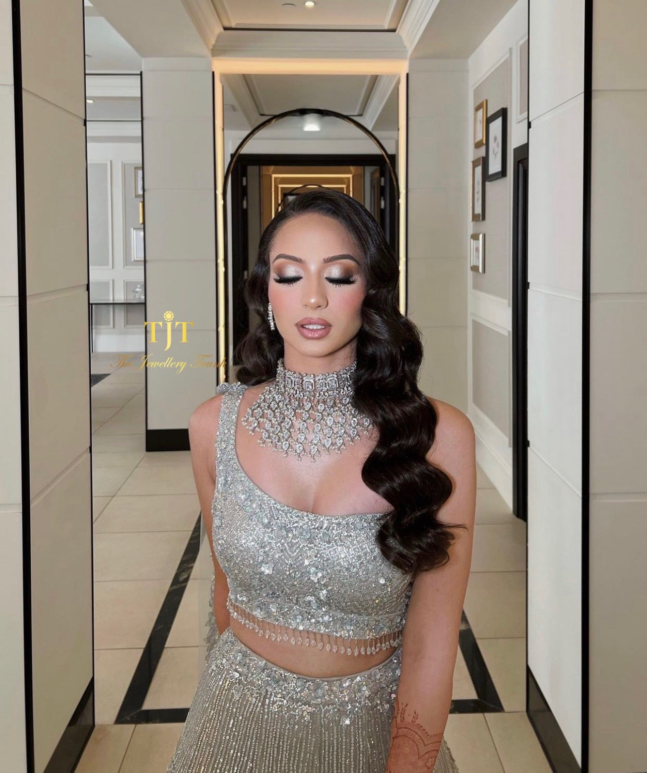 Our Bride Avneet on her reception rocking a elegant choker and studs !