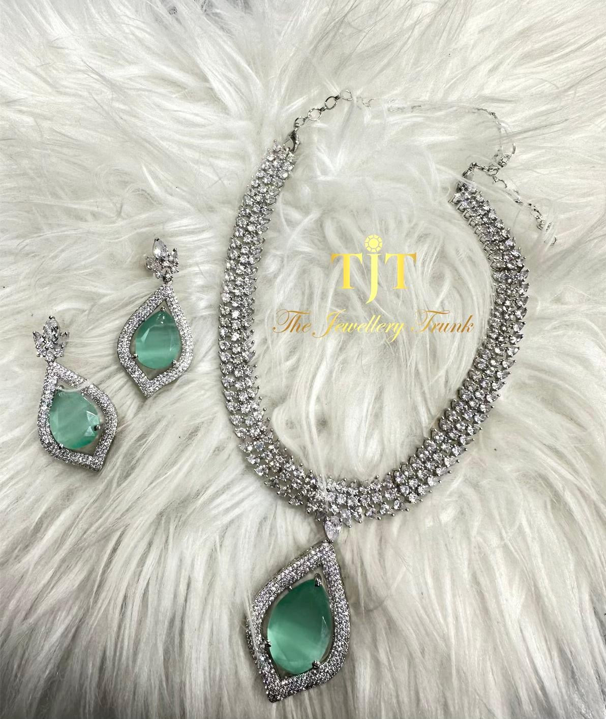 An American diamond necklace set. This is perfect for brides and bridesmaids who are opting for a western touch to their outfits and want a diamond effect.