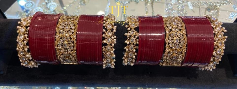 Dark maroon inside out(Front of your choora will start at your initial size and will gradually get bigger towards the back)