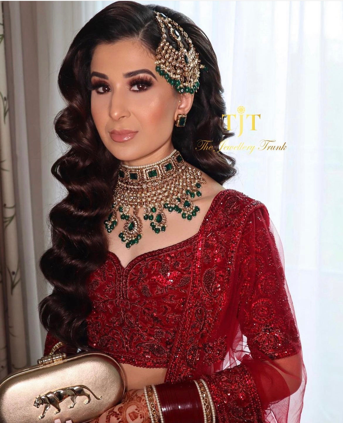 TJT bride Kimran opted to contrast her gorgeous outfit with this dark green statement choker necklace set.