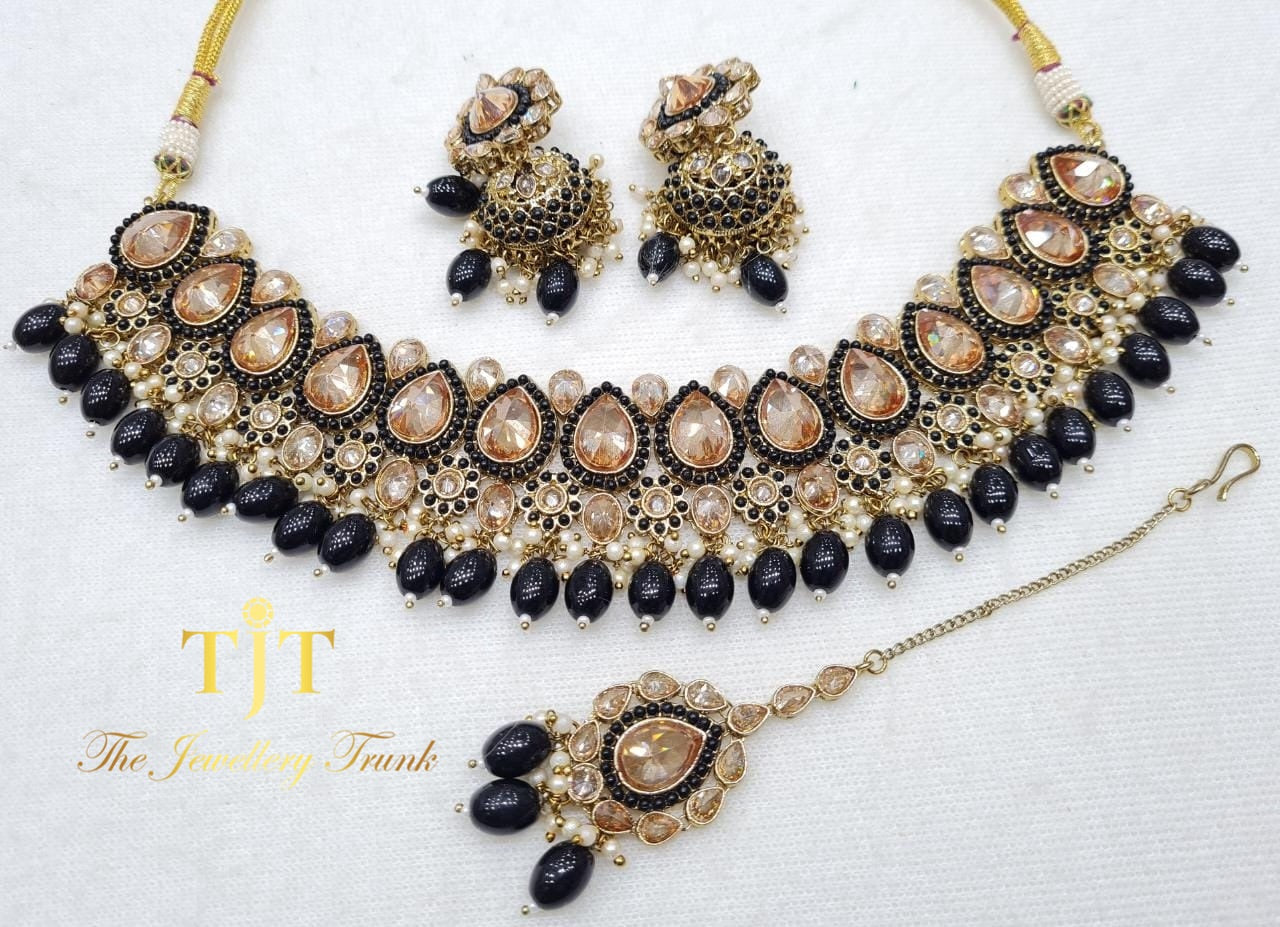 Oval black beads with off white LariyaFor custom and urgent orders please contact us via email on info@thejewellerytrunk.com, alternatively whatsapp us on +447896705464