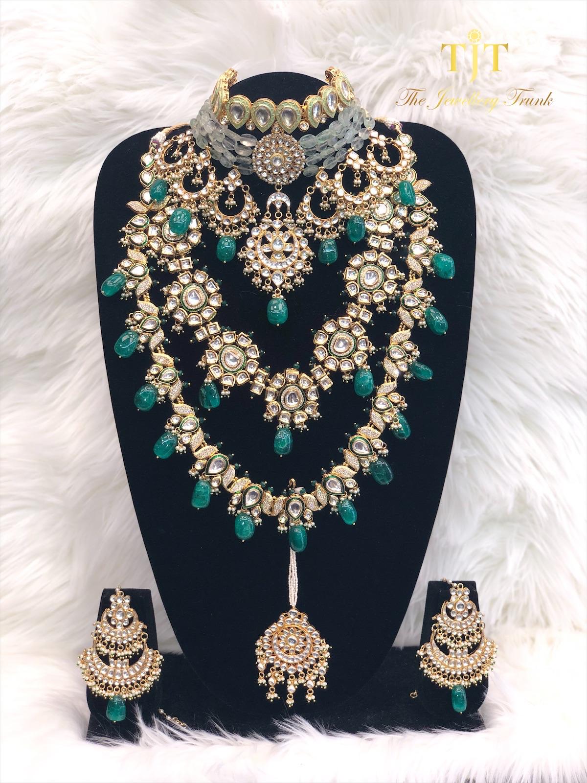 A choker set which comes down to from a subtle v shape when worn. This set works best with an outfit that has a v shaped or sweetheart neckline.