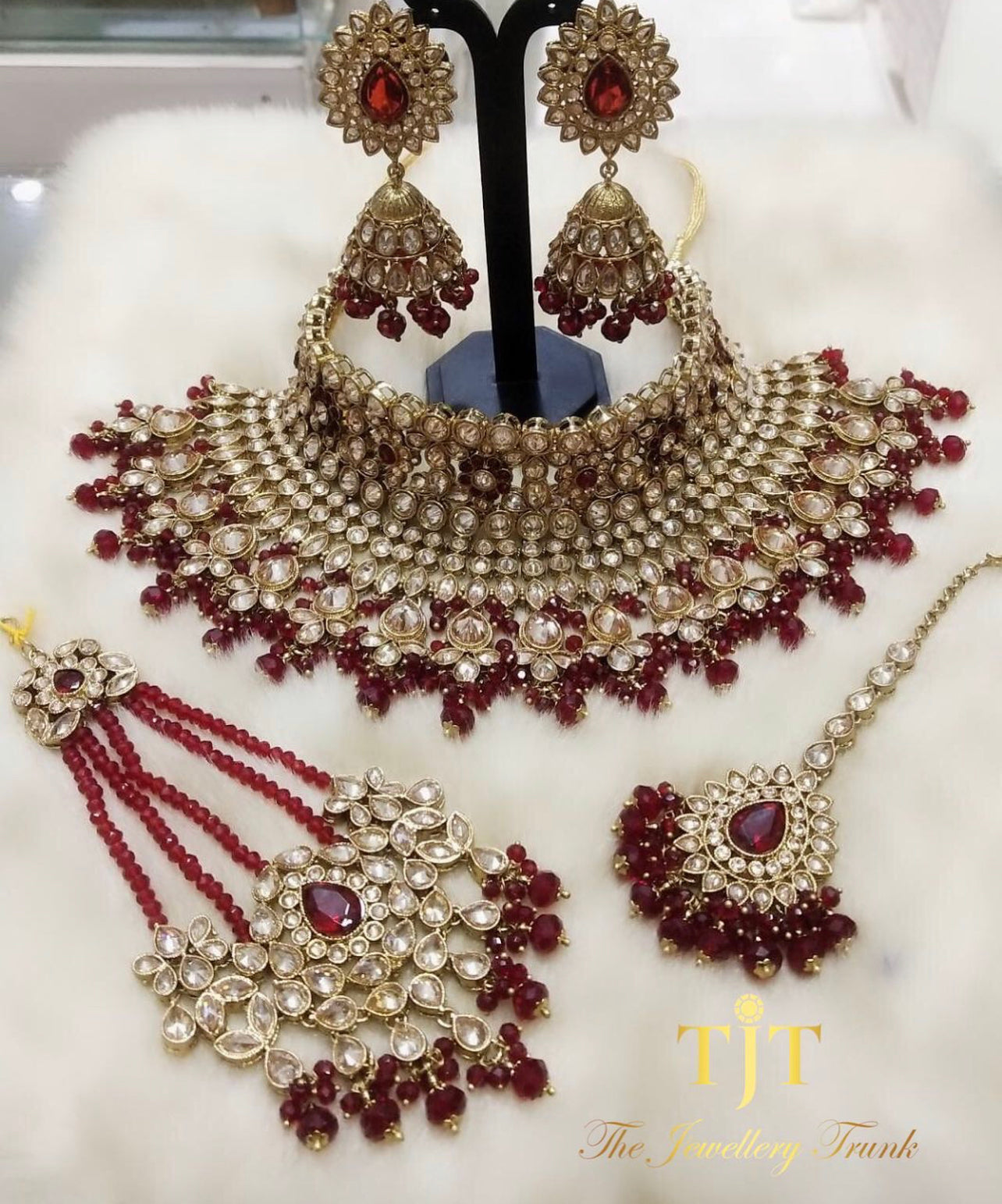 Maroon crystals with maroon crystal lariya clusters.For custom and urgent orders please contact us via email on info@thejewellerytrunk.com, alternatively whatsapp us on +447896705464