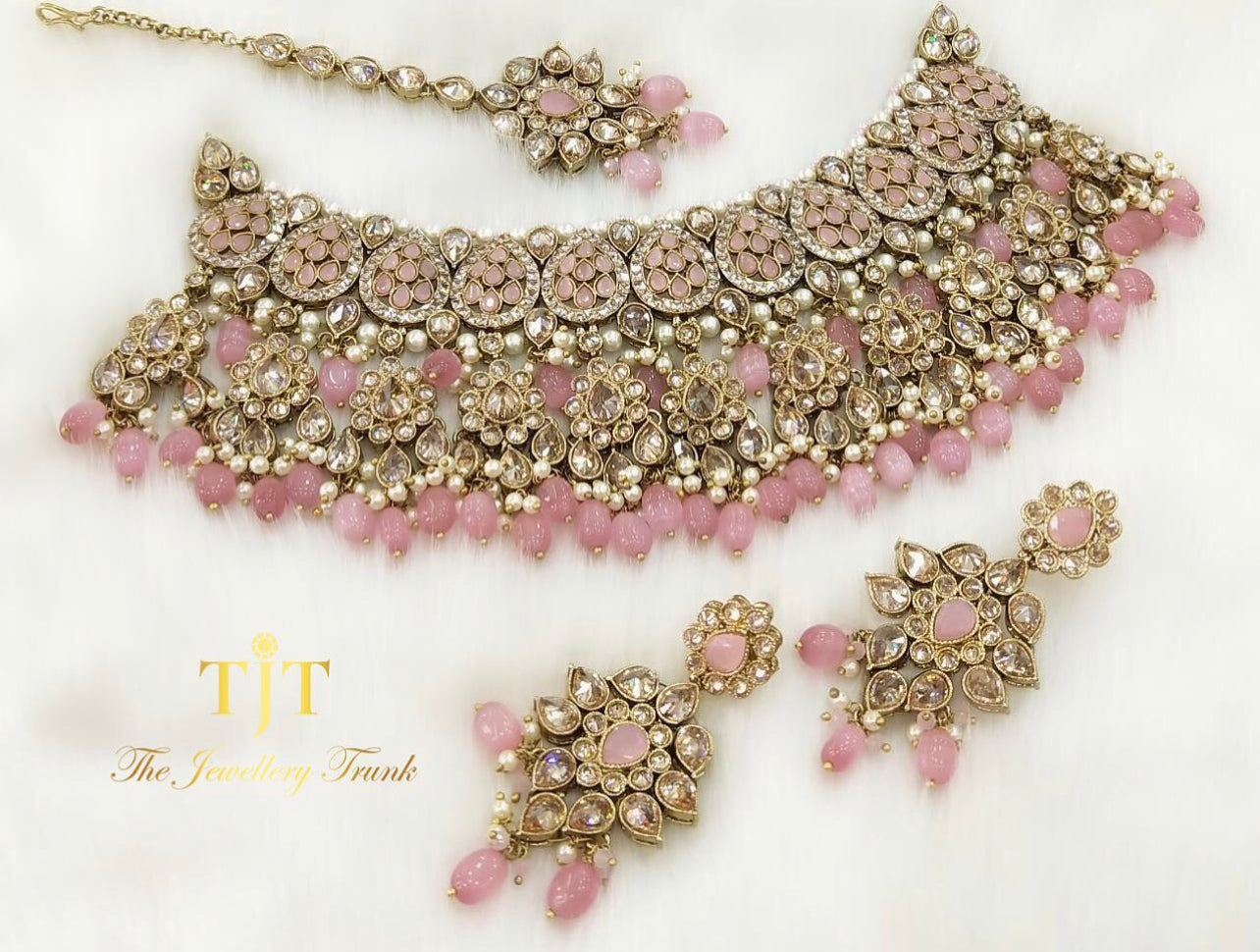 Two toned pink crystals with off white lariyaFor custom and urgent orders please contact us via email on info@thejewellerytrunk.com, alternatively whatsapp us on +447896705464