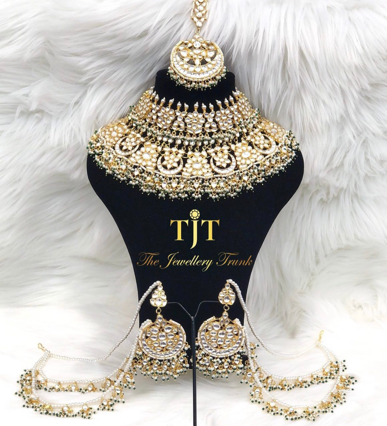 Off white pearls lariya clusters with emerald greenFor custom and urgent orders please contact us via email on info@thejewellerytrunk.com, alternatively whatsapp us on +447896705464