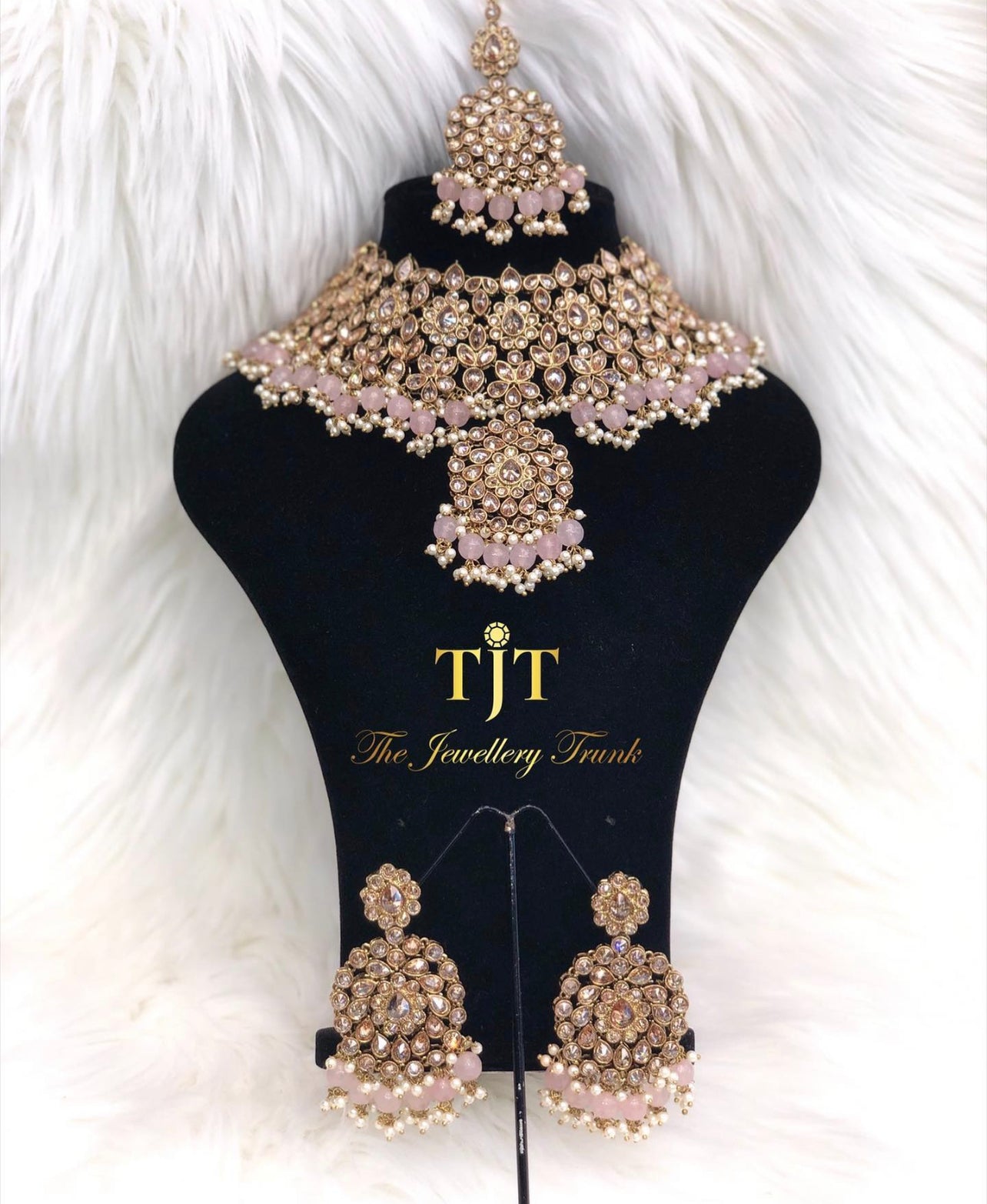 Light pink beads with off white lariya clusters.For custom and urgent orders please contact us via email on info@thejewellerytrunk.com, alternatively whatsapp us on +447896705464