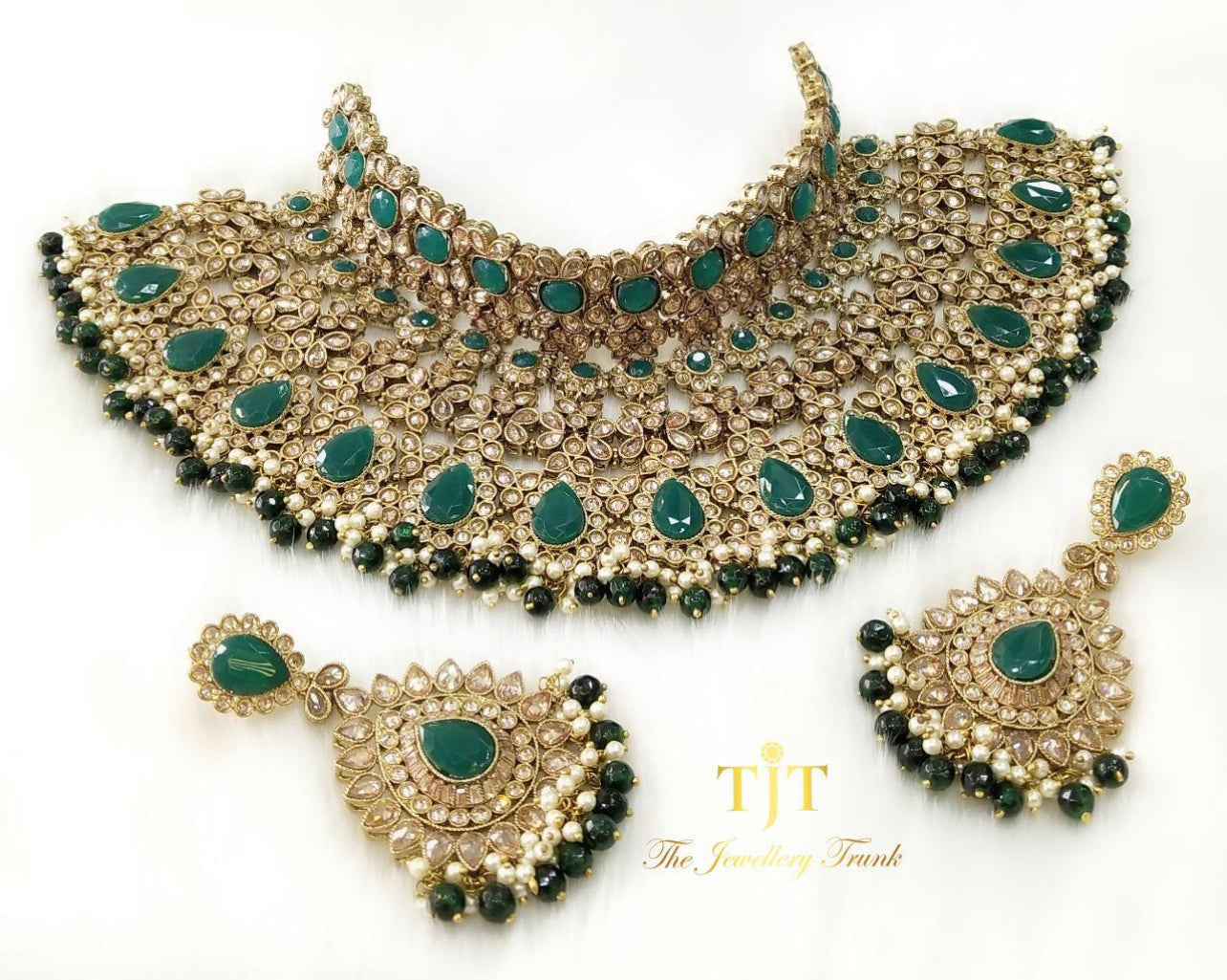 Matte emerald green beads with off white lariyaFor custom and urgent orders please contact us via email on info@thejewellerytrunk.com, alternatively whatsapp us on +447896705464