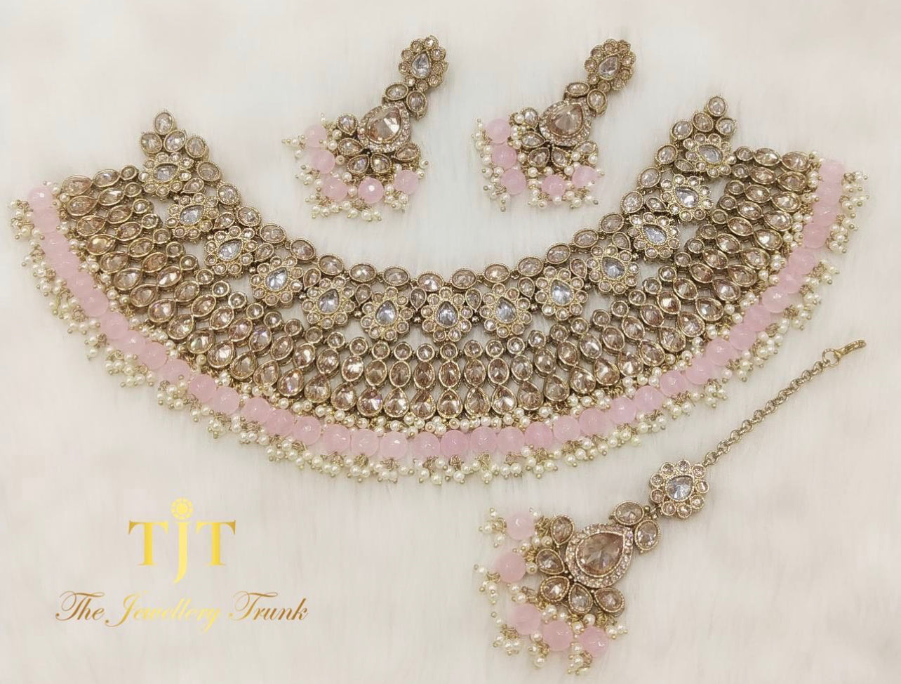 Baby pink beads with off white lariya clustersFor custom and urgent orders please contact us via email on info@thejewellerytrunk.com, alternatively whatsapp us on +447896705464