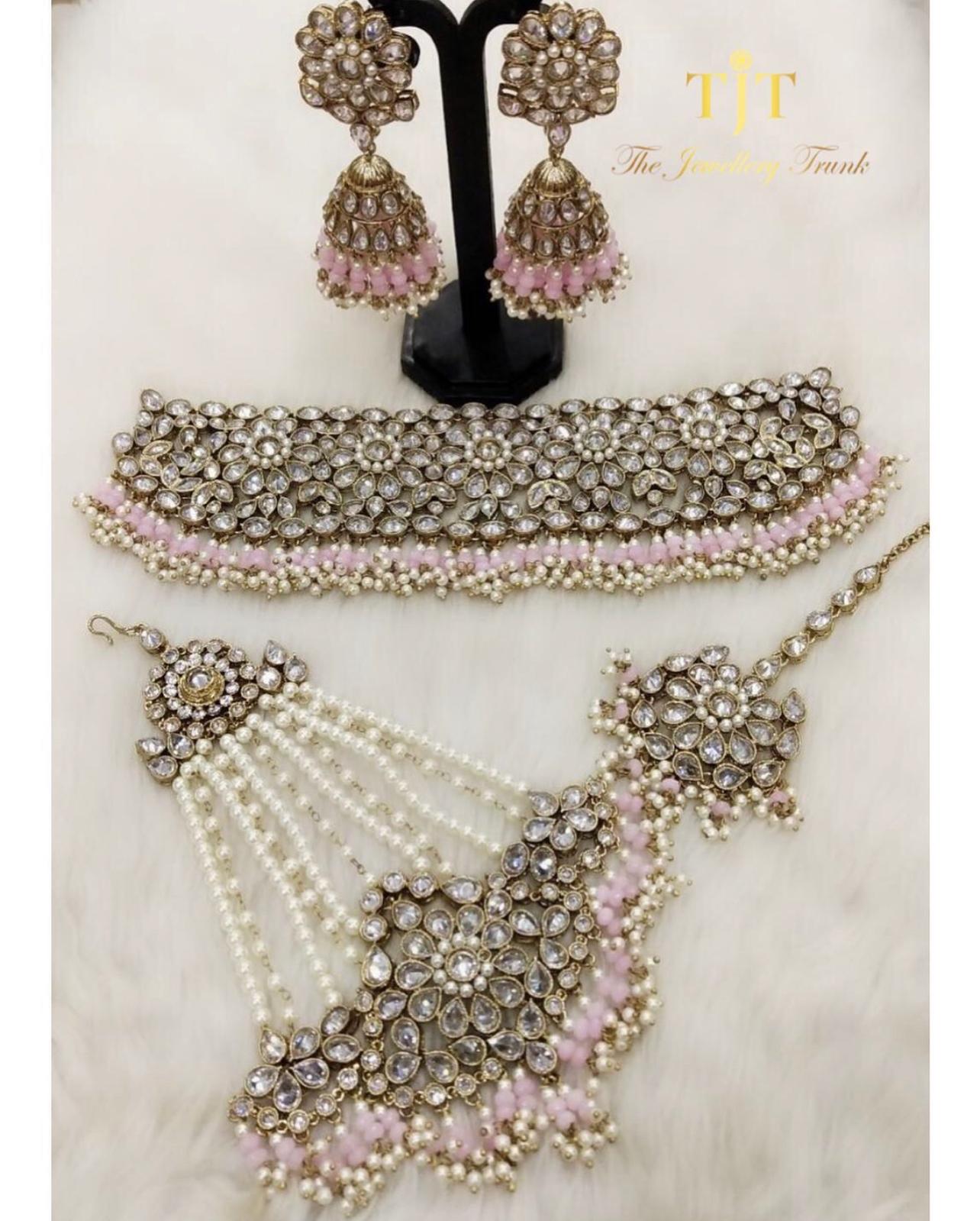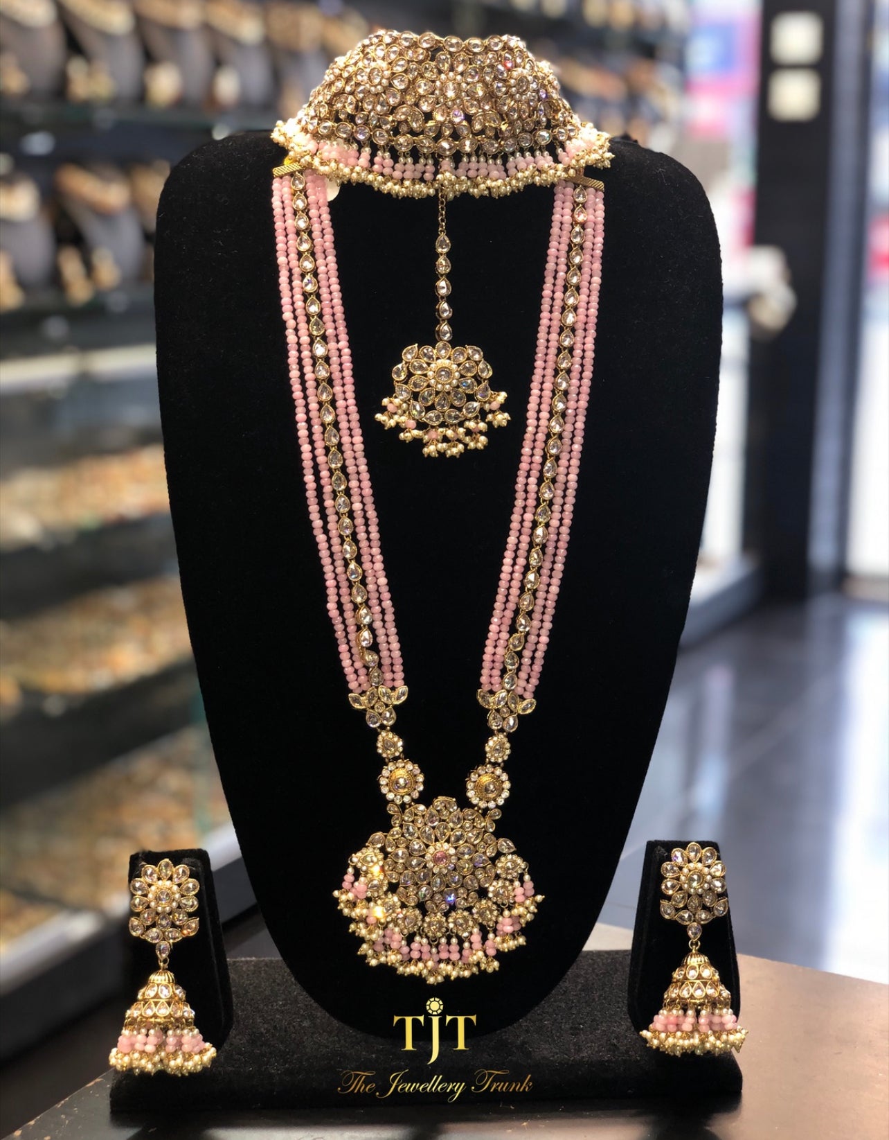 Baby pink crystal lariya clusters with off white lariyaFor custom and urgent orders please contact us via email on info@thejewellerytrunk.com, alternatively whatsapp us on +447896705464