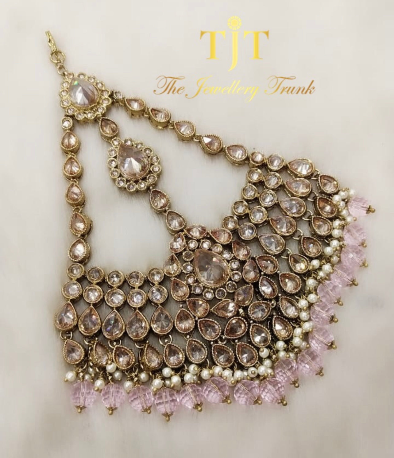 Light pink crystals with off white lariyaFor custom and urgent orders please contact us via email on info@thejewellerytrunk.com, alternatively whatsapp us on +447896705464