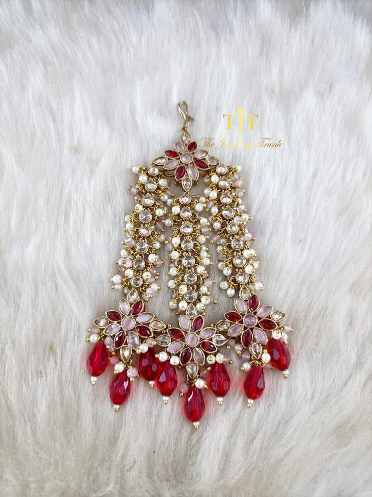 Mixed off white pearl and pink crystal lariya Red crystalsFor custom and urgent orders please contact us via email on info@thejewellerytrunk.com, alternatively whatsapp us on +447896705464