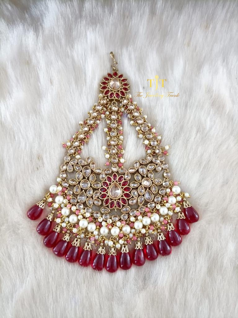 Ruby oval beads , off white pearls , mixed off white and salmon pink lariyaFor custom and urgent orders please contact us via email on info@thejewellerytrunk.com, alternatively whatsapp us on +447896705464
