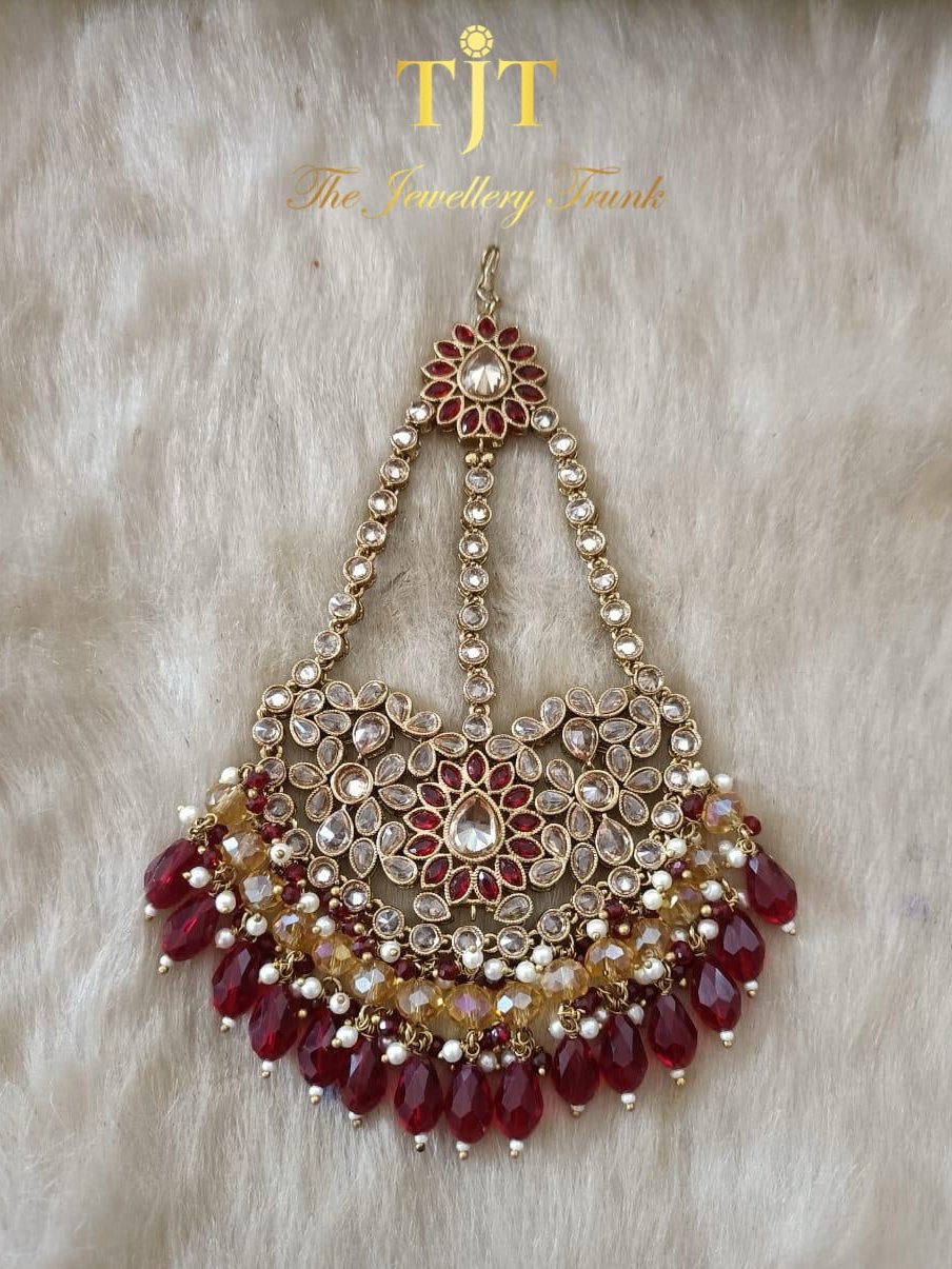 Maroon and Champagne Crystals with Maroon Crystal Lariya and Off-White Pearl Lariya