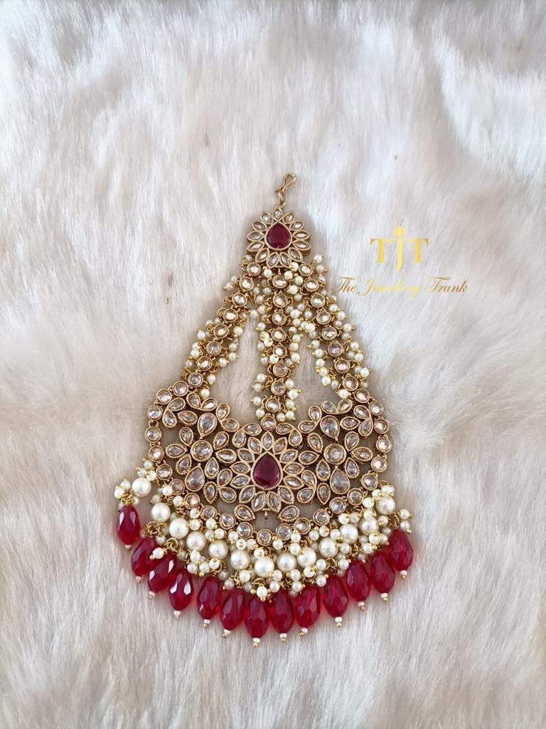 Red oval beads ,white pearls and white pearl lariyaFor custom and urgent orders please contact us via email on info@thejewellerytrunk.com, alternatively whatsapp us on +447896705464