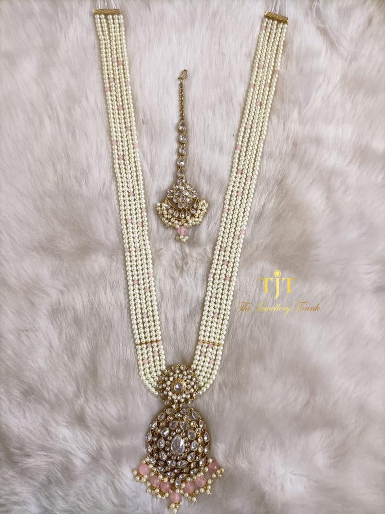 Pink beads with offwhite pearls and lariya