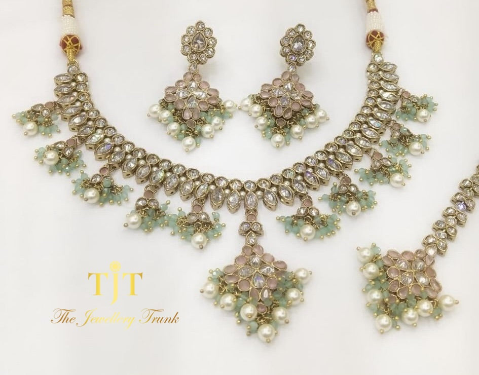 Off white pearl with sage green lariya