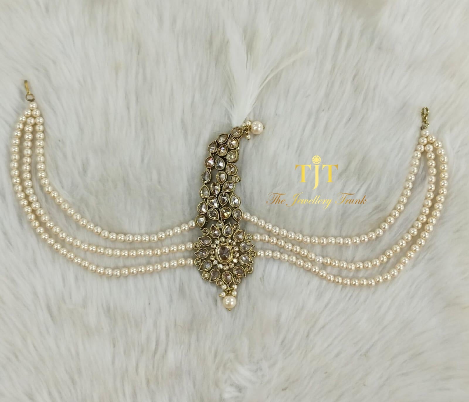 Kalgi with 3 line pearl chains and feather