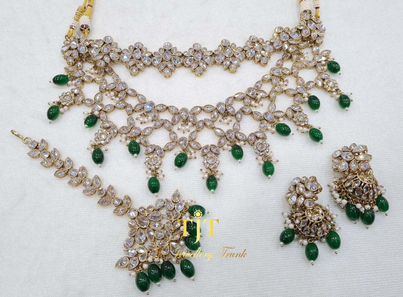 Green beads with white lariyaFor custom and urgent orders please contact us via email on info@thejewellerytrunk.com, alternatively whatsapp us on +447896705464