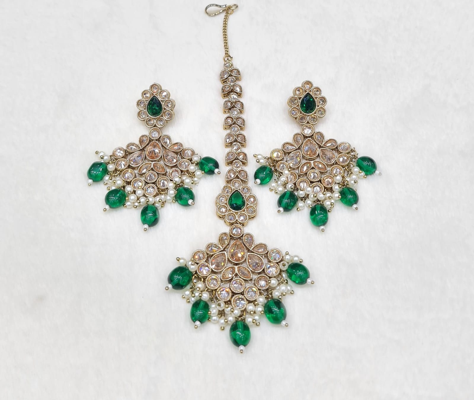 Emerald Green beads with offwhite lariya