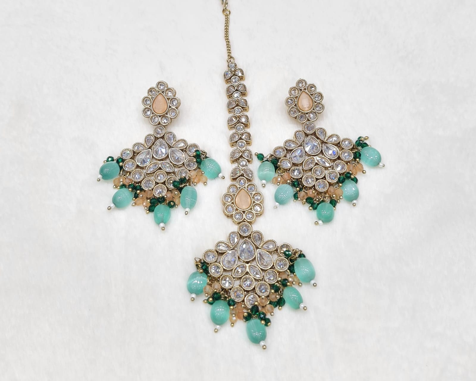 Mint beads with green and peach lariya clusters