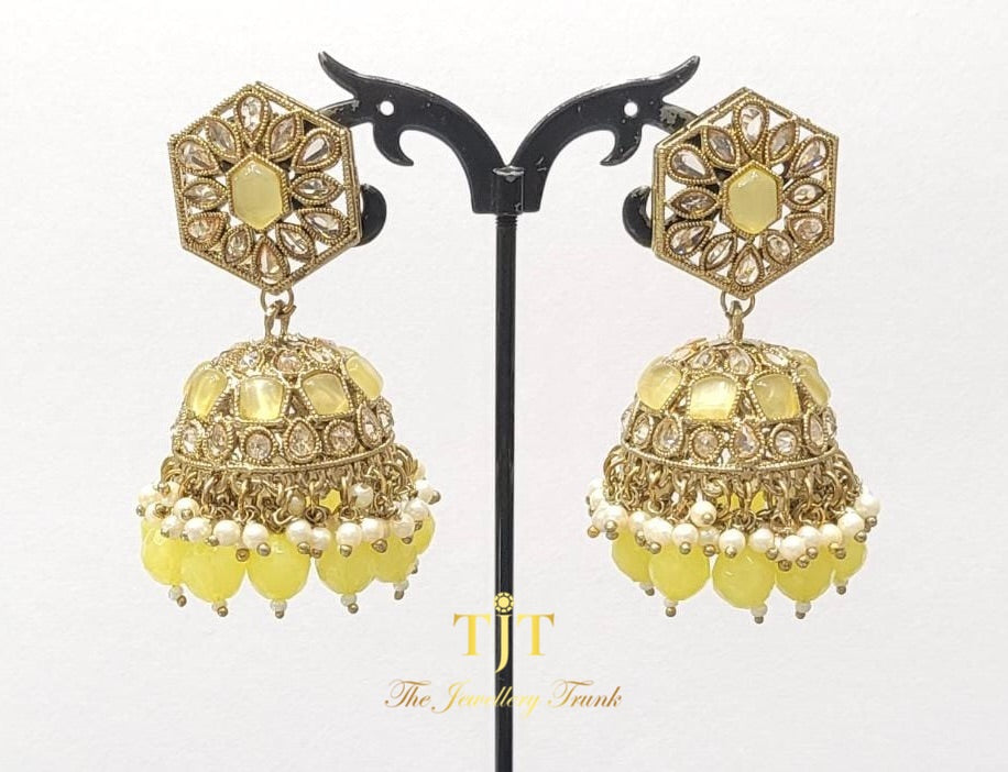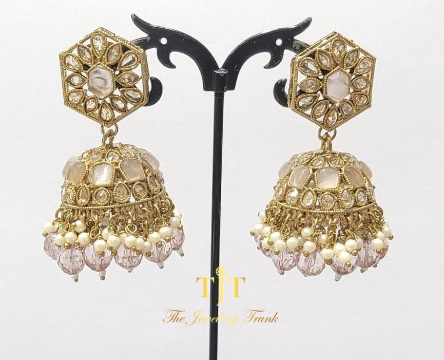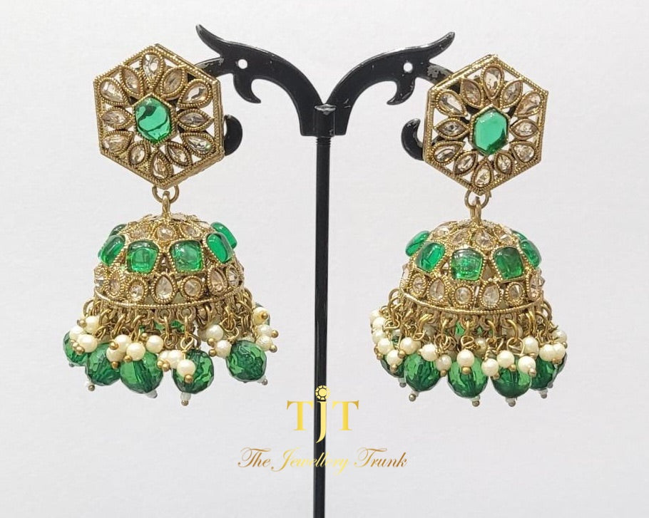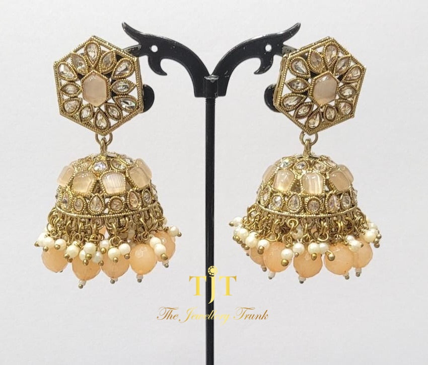 Stonework jhumka earrings. Available in 7 colours
