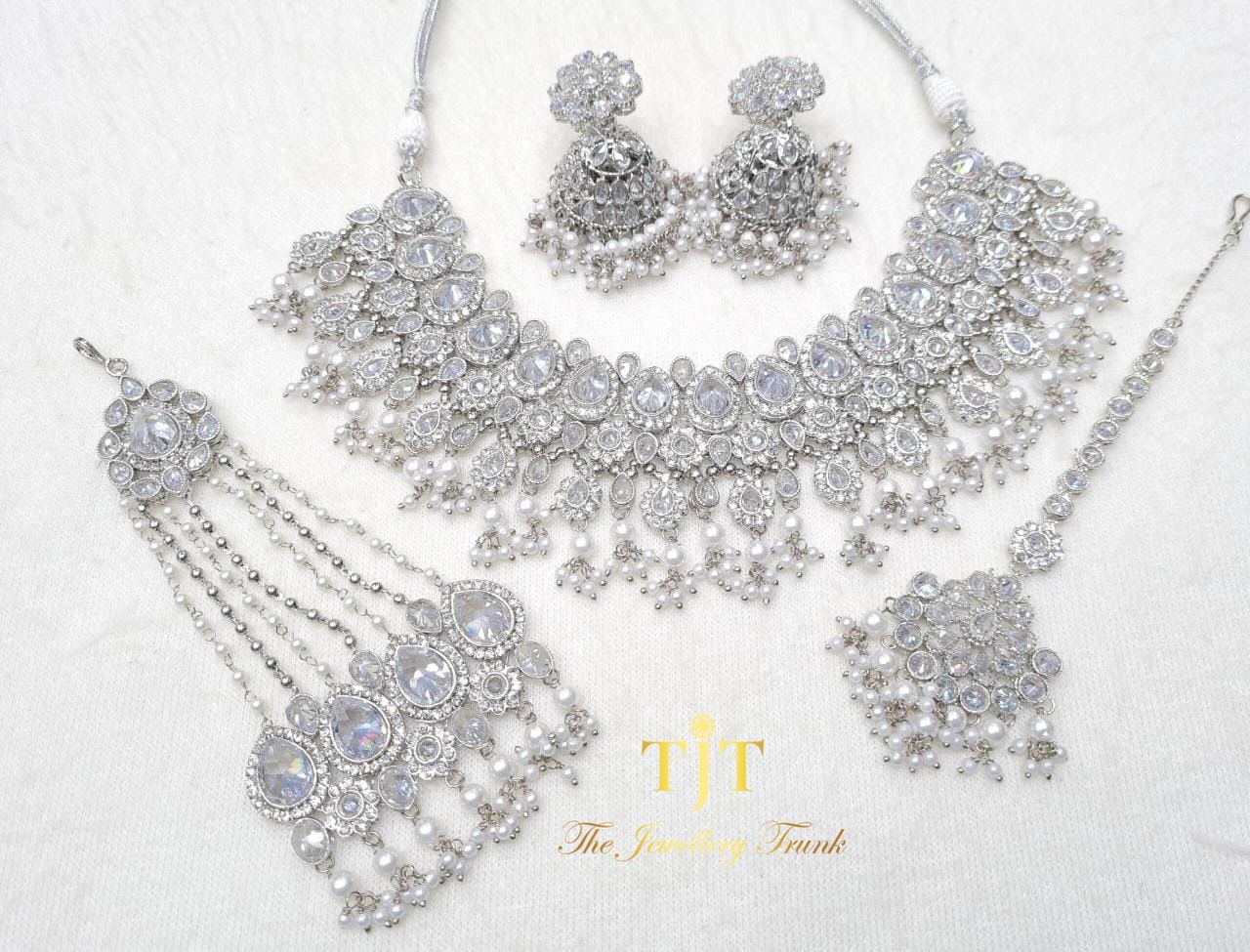A necklace set which sits higher on the neck. Perfect if your opting to go for a simple and elegant look for your event!