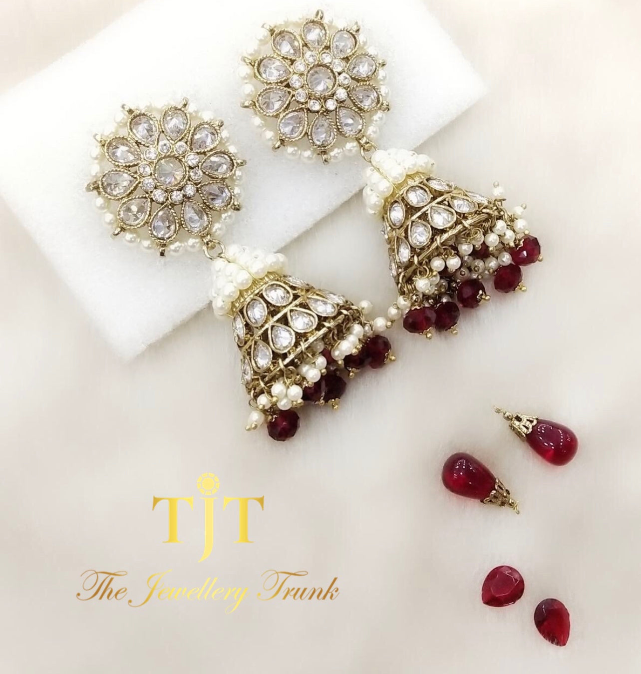 Maroon crystals with off white lariyaFor custom and urgent orders please contact us via email on info@thejewellerytrunk.com, alternatively whatsapp us on +447896705464