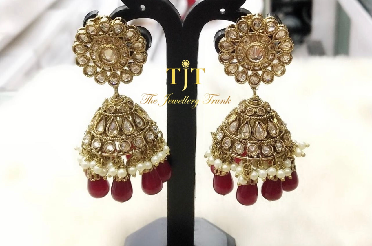 Ruby drops with pff white lariyaFor custom and urgent orders please contact us via email on info@thejewellerytrunk.com, alternatively whatsapp us on +447896705464