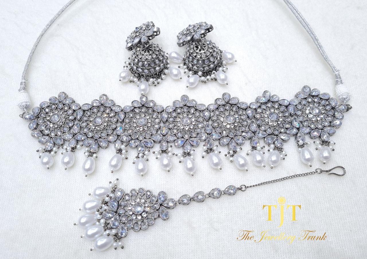 A high neck choker set which sits higher on the neck. Perfect if your opting to go for a simple and elegant look for your event!