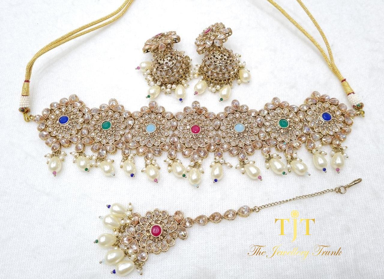 A high neck choker set which sits higher on the neck. Perfect if your opting to go for a simple and elegant look for your event!