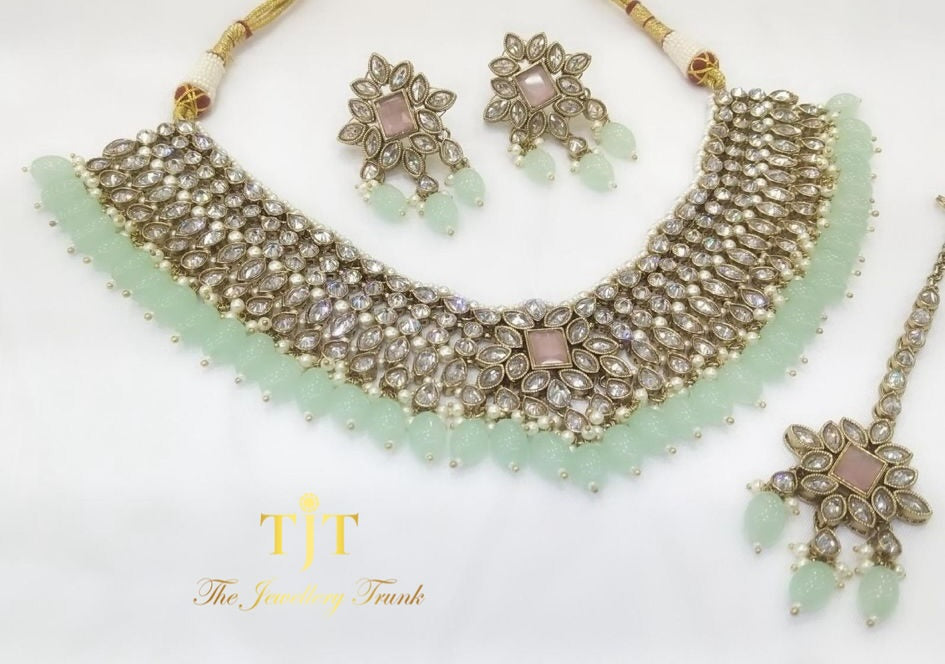 Light mint oval beads with off white lariyaFor custom and urgent orders please contact us via email on info@thejewellerytrunk.com, alternatively whatsapp us on +447896705464