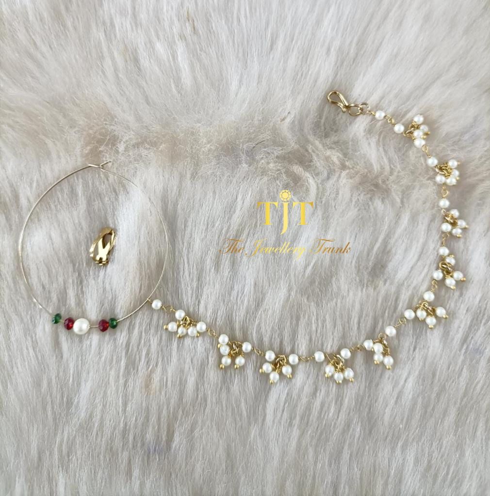 Beaded nose ring with a pearl chain
