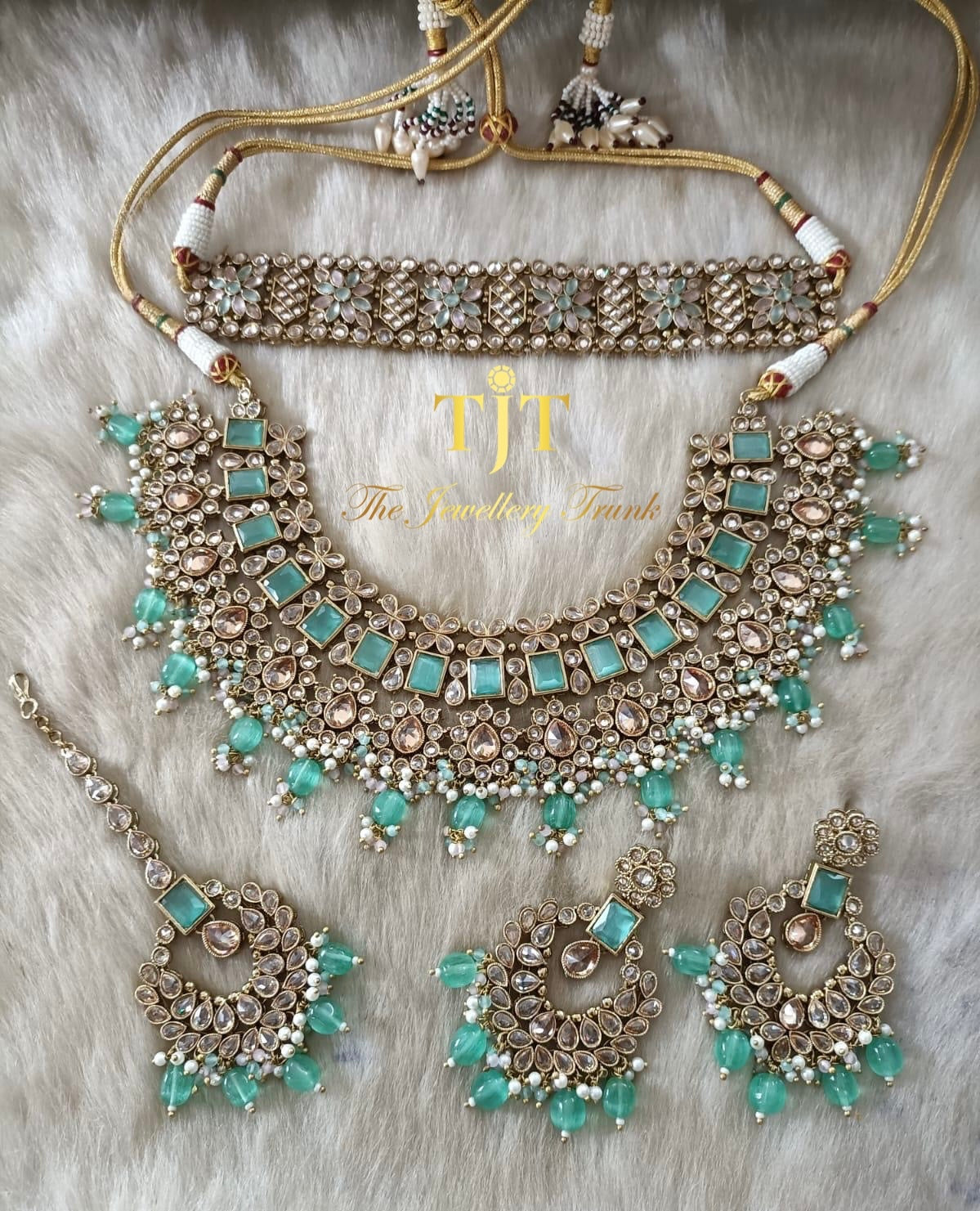 Mint and Off-White Lariya ClustersFor custom and urgent orders please contact us via email on info@thejewellerytrunk.com, alternatively whatsapp us on +447896705464